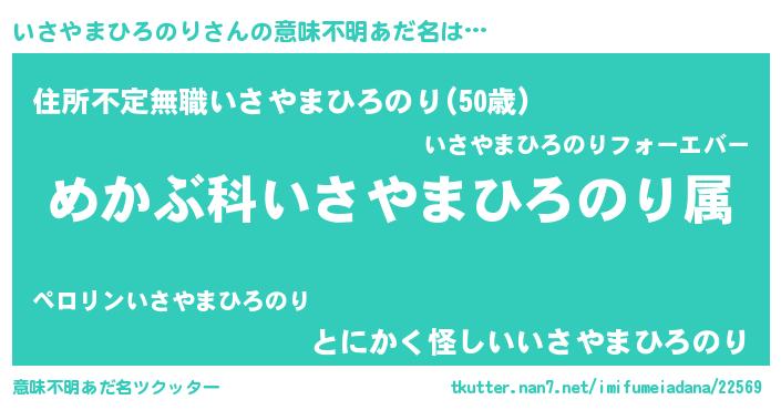 | 男性向けラノベタイトル風あだ名 | 『イサヤマヒロノリスレイヤー』 |