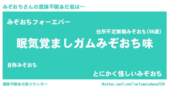 | ヘコむあだ名 | 『豆乳』『みぞっ子』『みぞもー』 |