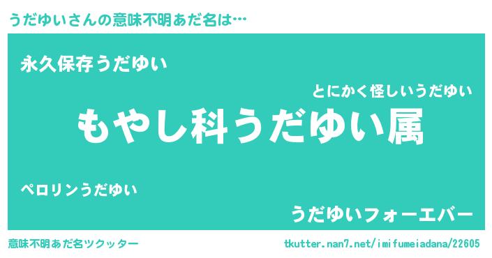 | 男性向けラノベタイトル風あだ名 | 『転生したらうだゆいだった件』 |
