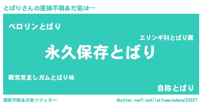 | ヘコむあだ名 | 『とばり(笑)』『とばにゅー』『豆乳』 |