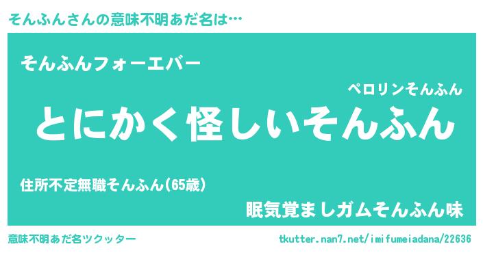 | 男性向けラノベタイトル風あだ名 | 『そんふんの嫁は女の子じゃないと思った?』 |