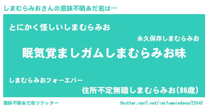 | ヘコむあだ名 | 『しまっちょ』『しまむらみお(震え声)』 |