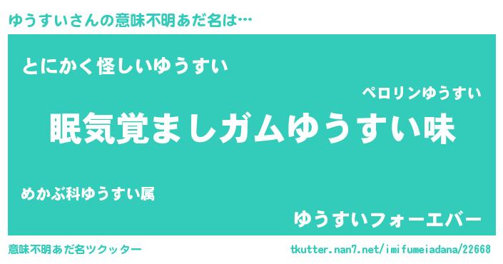 | ピコ太郎風あだ名 | 『ユユ太郎』『ユウ史郎』『ピユ太郎』 |