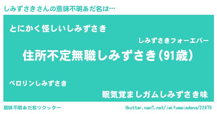 | 男性向けラノベタイトル風あだ名 | 『この素晴らしい世界にしみずさきを!』 |