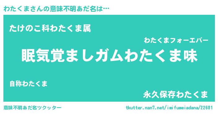 | 男性向けラノベタイトル風あだ名 | 『ノーゲーム・ノーワタクマ』 |