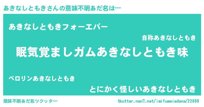 | 肩書あだ名 | 『あきなしともき助手』 |