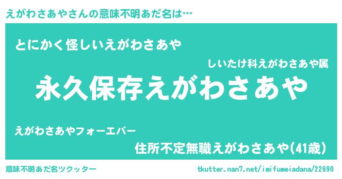 | 欧米人風あだ名 | 『アンジェラ・えがわさあや』 |