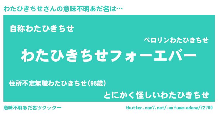 | 欧米人風あだ名 | 『わたひきちせクリステル』 |