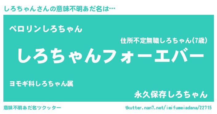 | 女子向けラノベタイトル風あだ名 | 『しろちゃんの雑貨屋さん』 |
