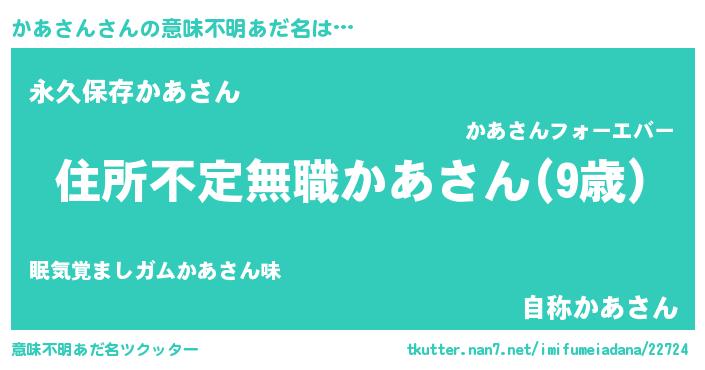 | 女子向けラノベタイトル風あだ名 | 『悪役かあさんに転生したようですが、知った事ではありません』 |