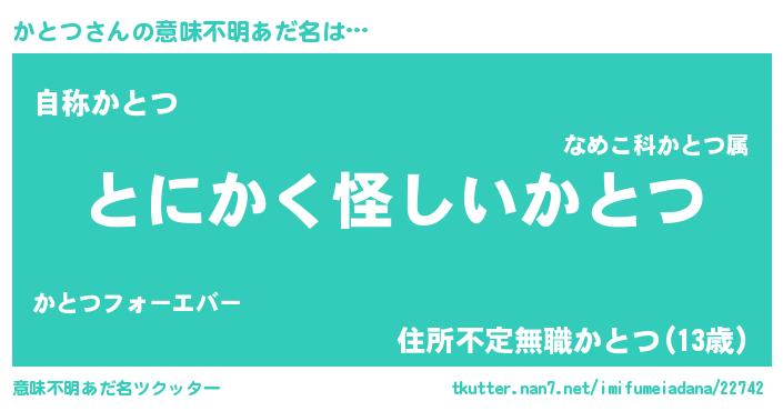 | ヒーロー風カッコイイあだ名 | 『暗黒騎士カト』『サイバー戦士カトツ』 |