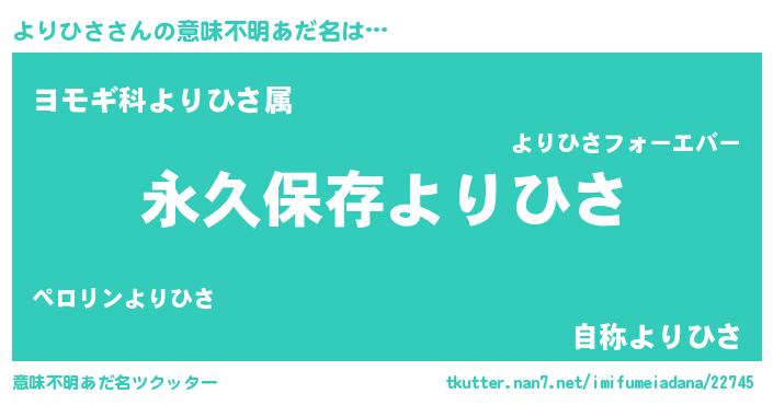 | 男性向けラノベタイトル風あだ名 | 『よりひさという概念が存在しない退屈な世界 』 |