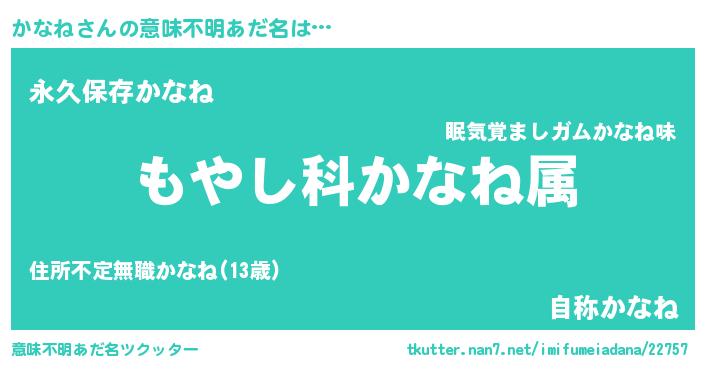 | 男性向けラノベタイトル風あだ名 | 『転生したらかなねだった件』 |