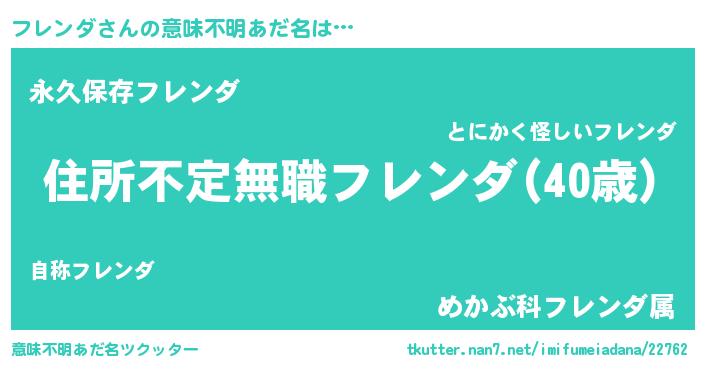 | ヘコむあだ名 | 『フレンダ(笑)』『フレを』『牛乳』 |