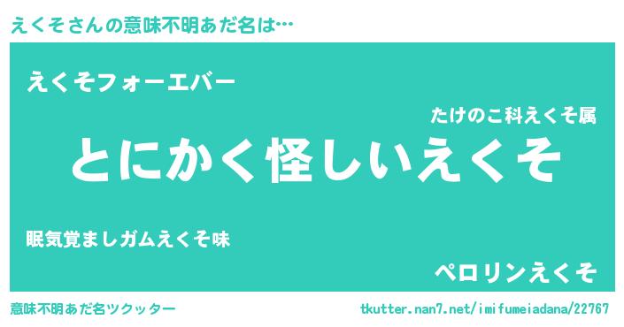 | 女子向けラノベタイトル風あだ名 | 『えくそ様がみてる』『死神えくその再婚』 |