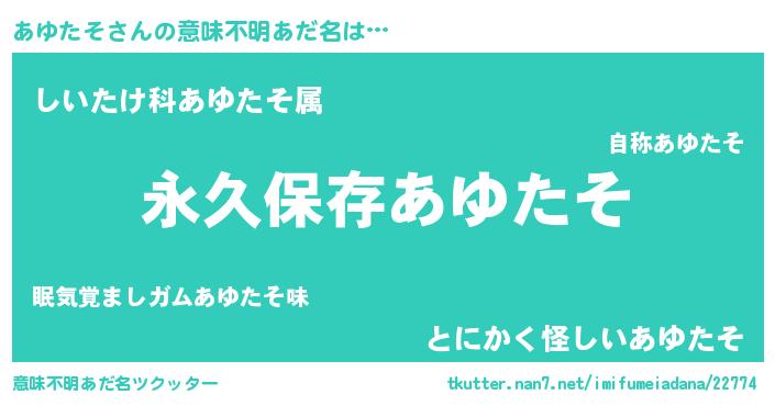 | 伝説のあだ名 | 『古文書に記された暗殺者あゆたそ』 |