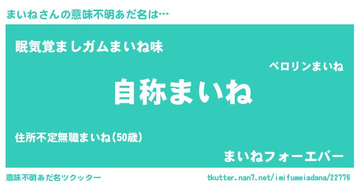 | 男性向けラノベタイトル風あだ名 | 『Re:まいねから始める異世界生活』 |