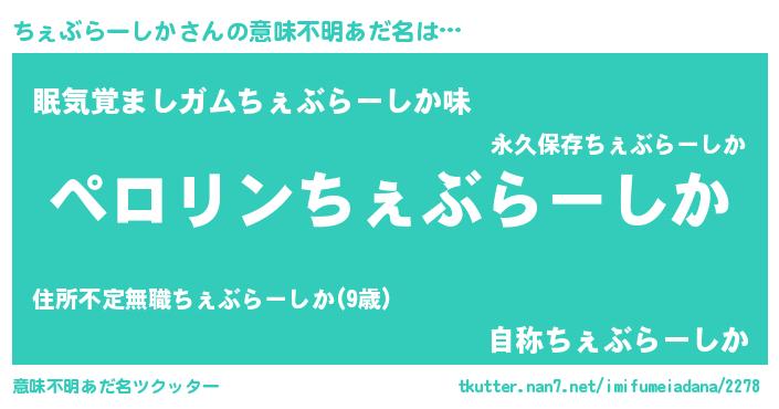 | ヘコむあだ名 | 『ちぇにゅー』『ちぇぶらーしか(笑)』 |