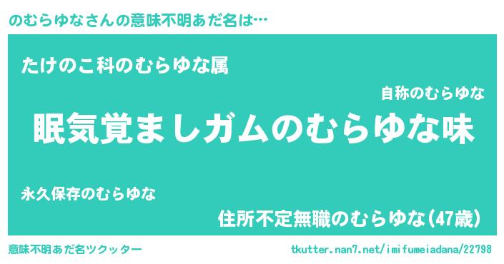 | 女子向けラノベタイトル風あだ名 | 『死神のむらゆなの再婚』 |