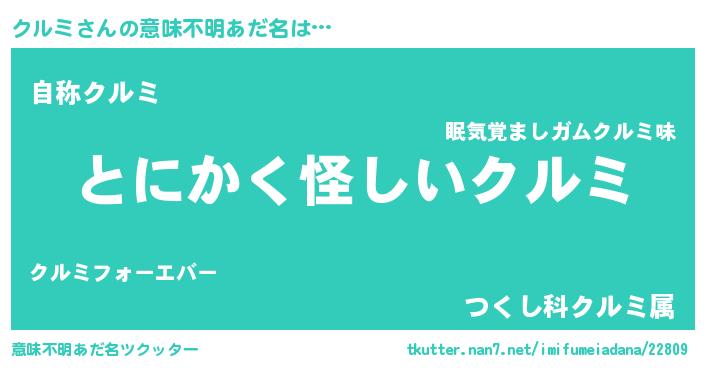 | ヒーロー風カッコイイあだ名 | 『暗黒騎士クル』『最強戦士クルミ』 |