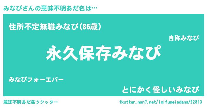 | 胡散臭い通販商品みたいなあだ名 | 『絶対に幸福をもたらす健康食品…その名も「みなぴ」』 |