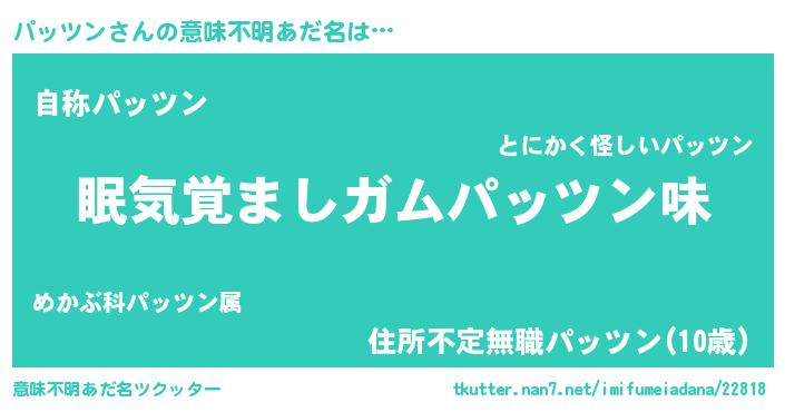 | ヘコむあだ名 | 『パッお』『パッふぇ~』『なまこ酢』 |