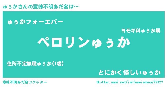 | 男性向けラノベタイトル風あだ名 | 『緋弾のュゥカ』『ゅぅかの憂鬱』 |