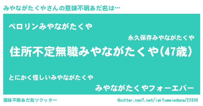 | ポケモン風あだ名 | 『ミヤゴンZ』『ミーヤイ』『ゼニミヤ』 |