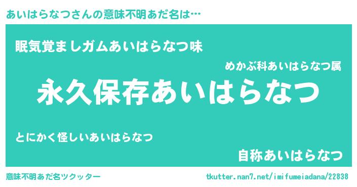 | 男性向けラノベタイトル風あだ名 | 『あいはらなつという概念が存在しない退屈な世界 』 |