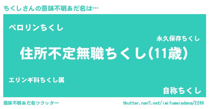 | 男性向けラノベタイトル風あだ名 | 『魔弾の王とちくし』『ちくしの憂鬱』 |