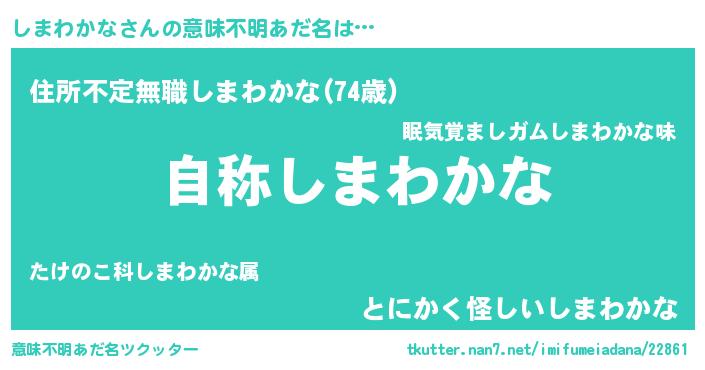 | 伝説のあだ名 | 『解き放たれた遊び人しまわかな』 |