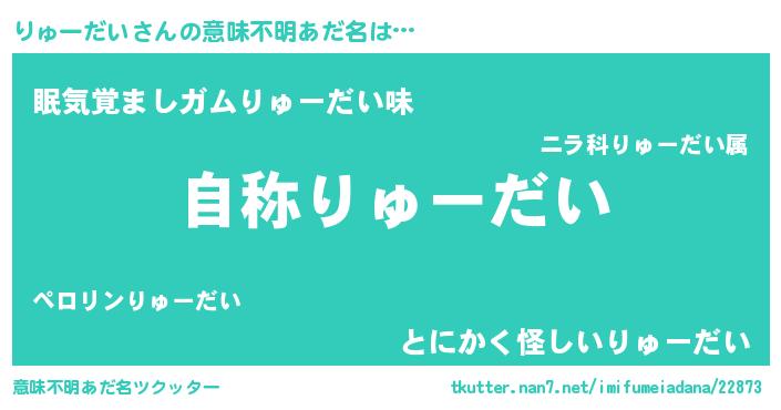 | 男性向けラノベタイトル風あだ名 | 『Re:りゅーだいから始める異世界生活』 |
