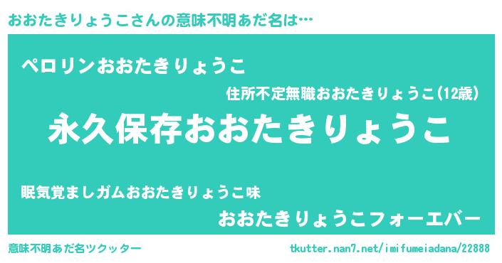 | 男性向けラノベタイトル風あだ名 | 『おおたきりょうこという概念が存在しない退屈な世界 』 |