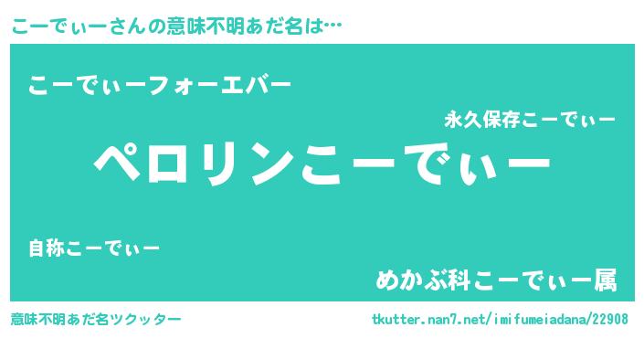 | 男性向けラノベタイトル風あだ名 | 『こーでぃーに滅ぼされるだけの簡単なお仕事です』 |