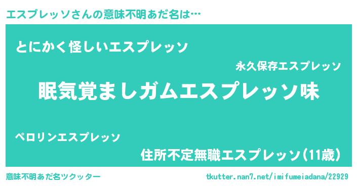 | ヒーロー風カッコイイあだ名 | 『慈愛の使者エスプレッソ』 |