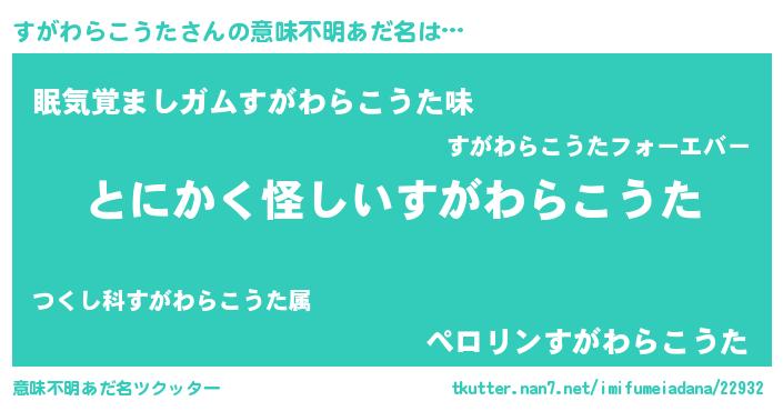 | 胡散臭い通販商品みたいなあだ名 | 『伝統あるサプリメント…その名も「すがわらこうた」』 |