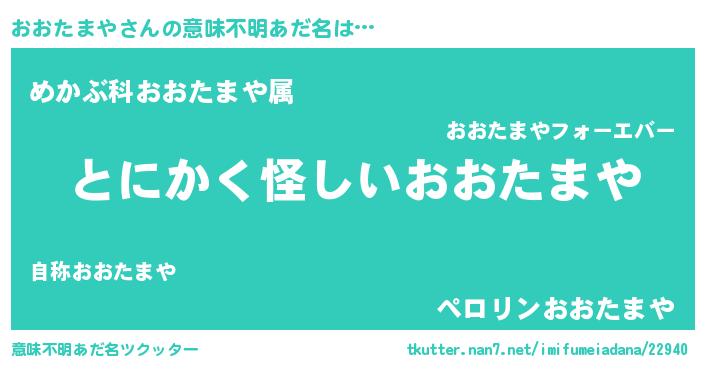 | 男性向けラノベタイトル風あだ名 | 『おおたまやの嫁は女の子じゃないと思った?』 |