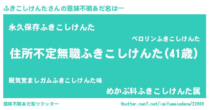 | 男性向けラノベタイトル風あだ名 | 『魔弾の王とふきこしけんた』 |