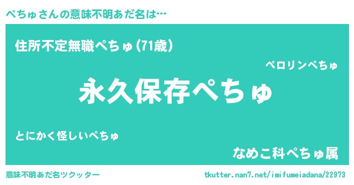 | 胡散臭い通販商品みたいなあだ名 | 『絶対に幸福をもたらす健康食品…その名も「ぺちゅ」』 |