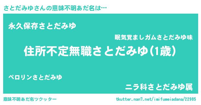 | ヘコむあだ名 | 『さとだみゆ(小並感)』『さともー』 |