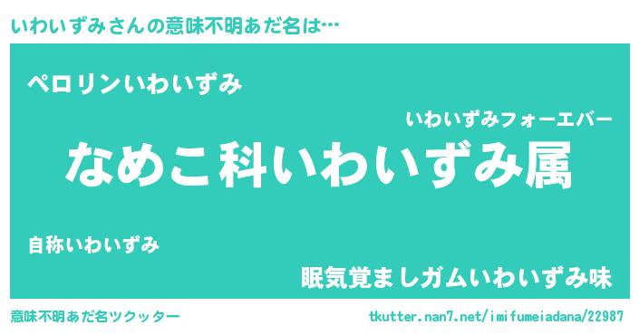 | 男性向けラノベタイトル風あだ名 | 『冴えないいわいずみの育てかた』 |