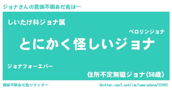 | 欧米人風あだ名 | 『ジョナ・ステッグマイヤー』 |