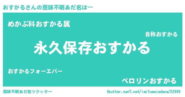 | 男性向けラノベタイトル風あだ名 | 『おすかるという概念が存在しない退屈な世界 』 |