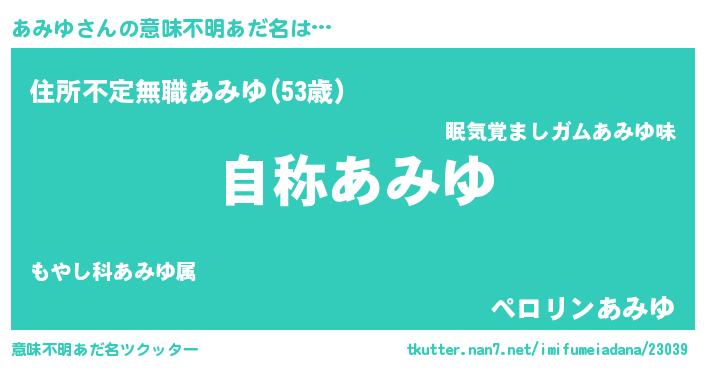 | 男性向けラノベタイトル風あだ名 | 『Re:あみゆから始める異世界生活』 |