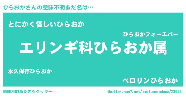 | 男性向けラノベタイトル風あだ名 | 『ヒラオカスレイヤー』 |