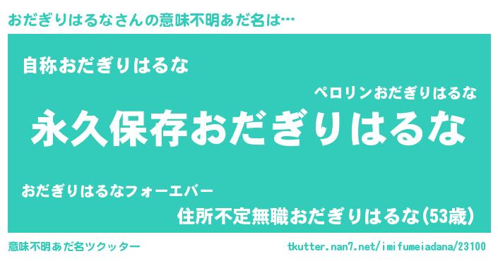 | 伝説のあだ名 | 『古より伝わる吟遊詩人おだぎりはるな』 |