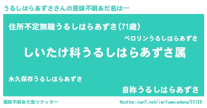 | 男性向けラノベタイトル風あだ名 | 『ウルシハラアズサスレイヤー』 |