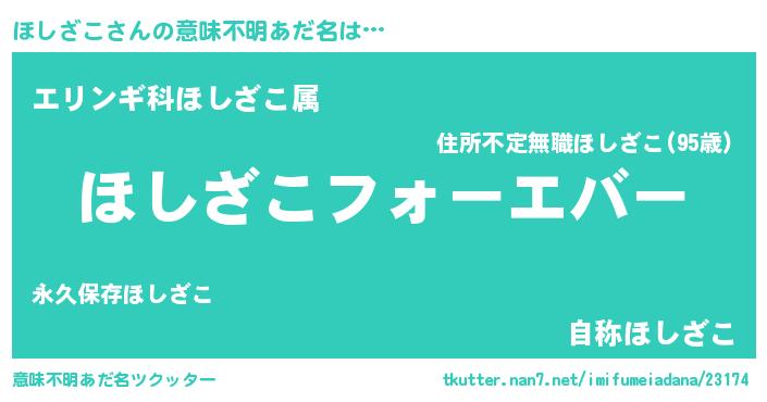| 女子向けラノベタイトル風あだ名 | 『ほしざこの雑貨屋さん』 |