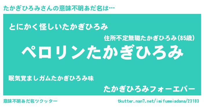 | 男性向けラノベタイトル風あだ名 | 『たかぎひろみの憂鬱』 |
