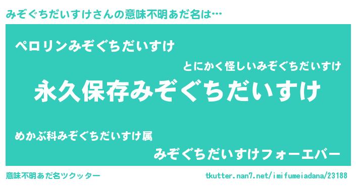 | 男性向けラノベタイトル風あだ名 | 『みぞぐちだいすけに滅ぼされるだけの簡単なお仕事です』 |
